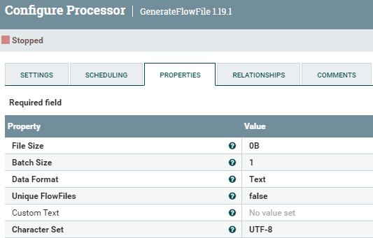 - GenerateFlowFile ์์ฑ ์ค์