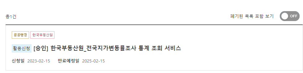 (ํ๊ตญ๋ถ๋์ฐ์_์ ๊ตญ์ง๊ฐ๋ณ๋๋ฅ ์กฐ์ฌ ํต๊ณ ์กฐํ ์๋น์ค) Open API ํ์ฉ์ ์ฒญ ํ ์ธ์ฆํค ๋ฐ๊ธ