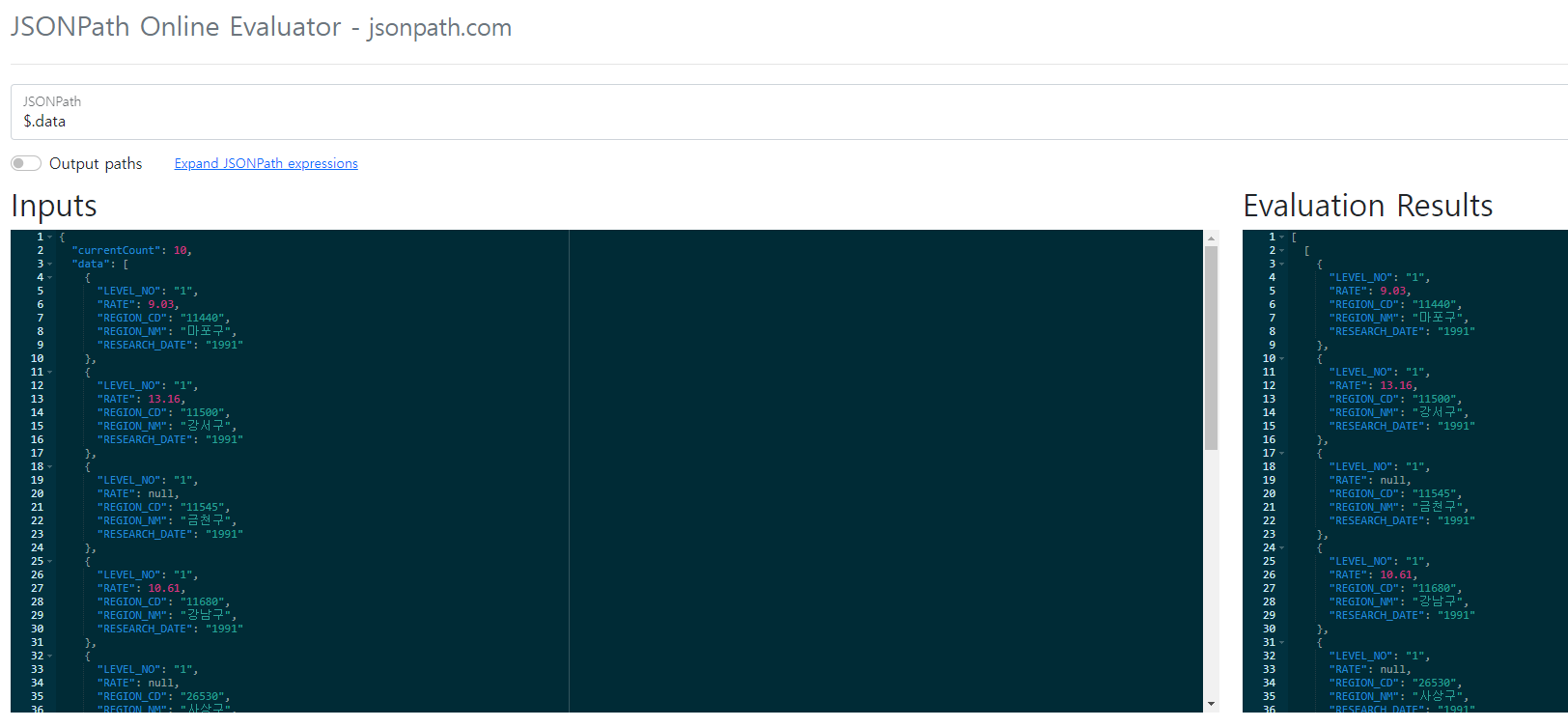 3. ํธ์ถํ API๋ฐ์ดํฐ์์ data ๋ถ๋ถ๋ง ์ถ์ถ