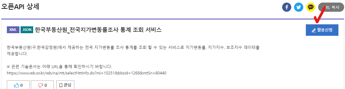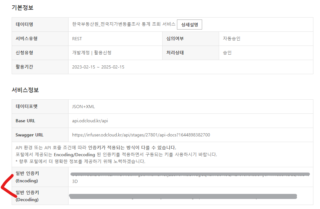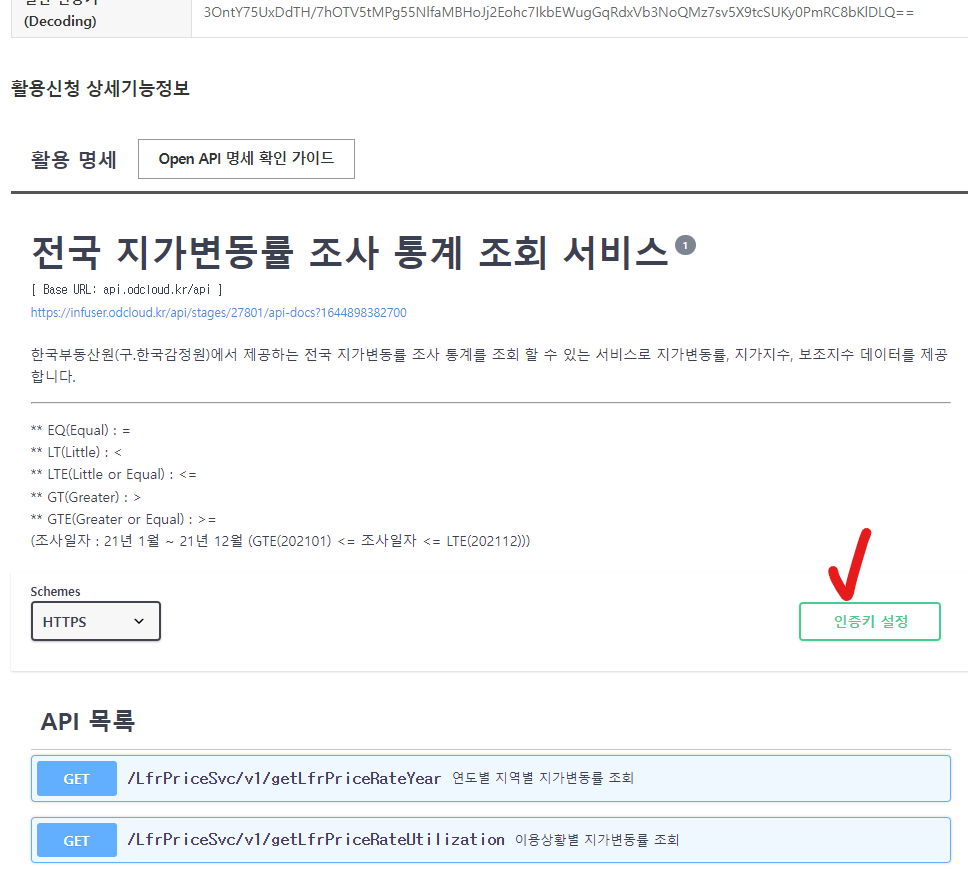 (ํ๊ตญ๋ถ๋์ฐ์_์ ๊ตญ์ง๊ฐ๋ณ๋๋ฅ ์กฐ์ฌ ํต๊ณ ์กฐํ ์๋น์ค) Open API ํ์ฉ์ ์ฒญ ํ ์ธ์ฆํค ๋ฐ๊ธ