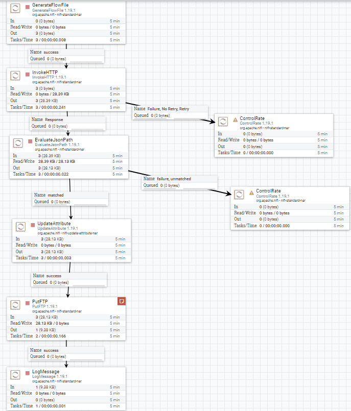 InvokeHTTP, EvaluateJsonPath ํ๋ก์ธ์ค์ ์ฐ๊ฒฐํ์ฌ Failure, No Retry, Retry, unmathced ์ผ ๋,