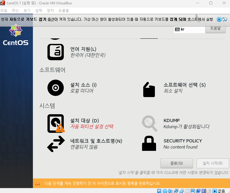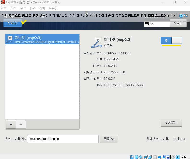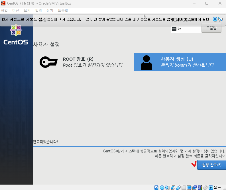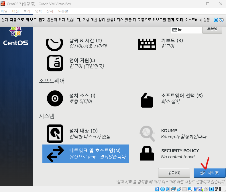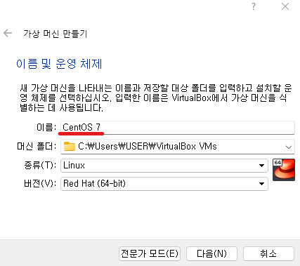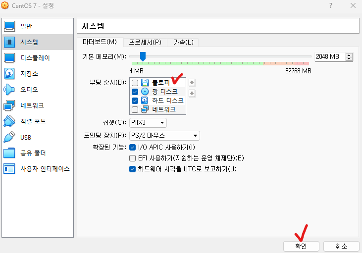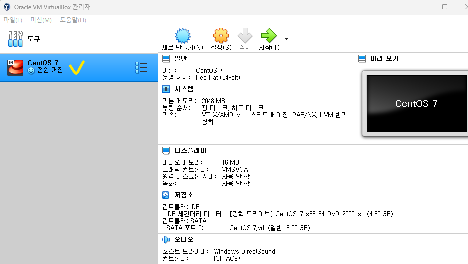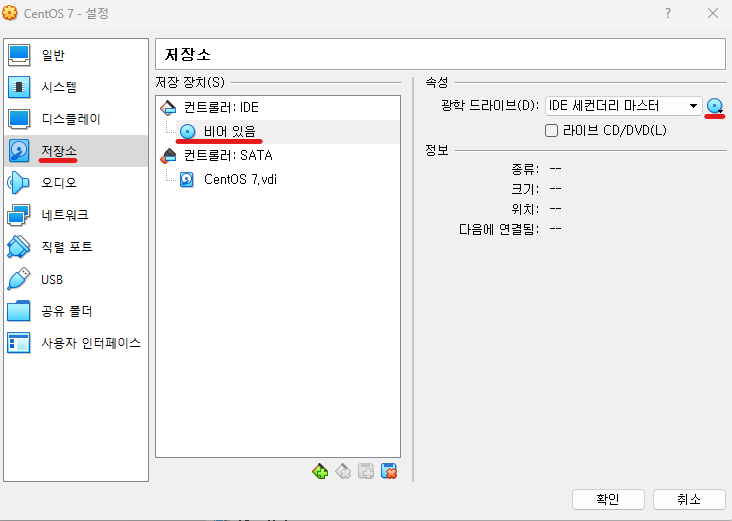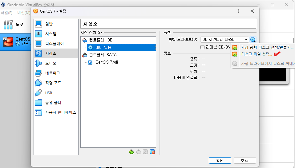 ๋ง๋ค์ด์ง 'CentOS 7' ์ฐํด๋ฆญ → ์ค์ →์ ์ฅ์