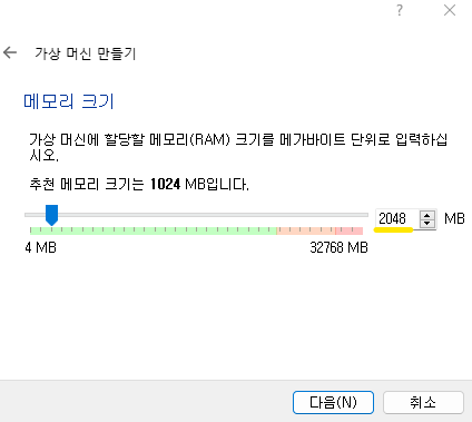 ๋๋ 2GB๋ก ์ค์ ํ๋ค.