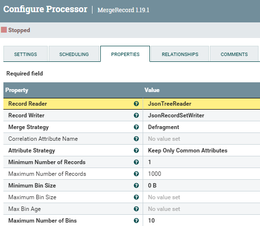 MergeRecord ํ๋ก์ธ์ค๋ฅผ ํ์ฉํ์ฌ ํ๋ก์ฐ์ ๋ฐ์ดํฐํ์ผ์ ๋ด์ฉ์ ํ๋์ json ํ์ผ๋ก ํฉ์น๋ค.