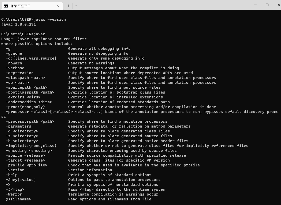 이제 자바가 잘 설치되었는지 확인하는 작업을 해보겠습니다.