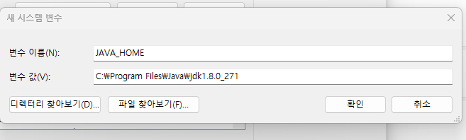 변수 값: C:\Program Files\Java\jdk1.8.0_271