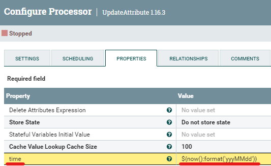 2. μ€λλ μ§(yyyymmdd) κ°μ΄ λ€μ΄κ° time μ΄λ¦μ μμ±μ μμ± (κ°μ μ«μμ¬μ©νμ§ μκ³ Expression Language λ₯Ό μ¬μ©νμ¬ μμ±)