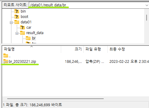 10. νμΌμ SFTPμλ²μ /data01/result_data/ λλ ν 리 νμμ μ΄λμ