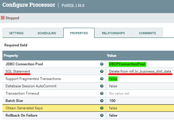postgresql DB nifi μ€ν€λ§ λ΄μ br_business_dist_data ν μ΄λΈμ λ°μ΄ν°λ₯Ό DELETEλ₯Ό ν΄μ€λ, PutSQL νλ‘μΈμ€λ₯Ό μ¬μ©ν΄μΌ νκ³ ,