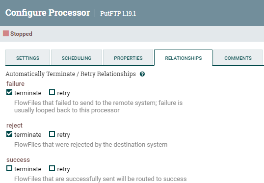PutFTP 프로세스를 생성하고 속성을 설정합니다.